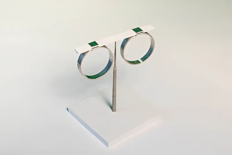 Прибор состоит из основания, в которое вставляется стойка, и перекладины, к которой крепятся алюминиевые кольца – цельное и с прорезью. В середине перекладины расположено гнездо для насаживания на острие иглы стойки.