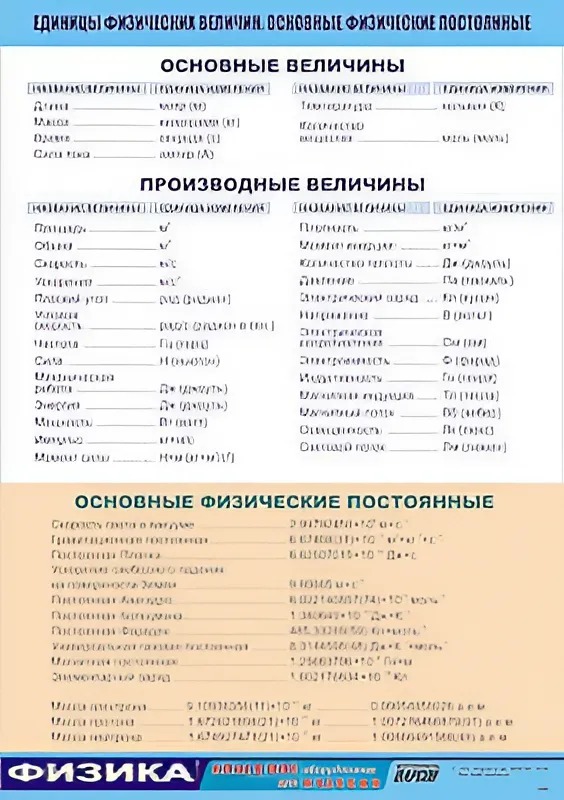 Главная Каталог Демонстрационные учебно-наглядные пособия Кабинет физики Таблица демонстрационная "Единицы физических величин. Основные физические постоянные" (винил 70*100)