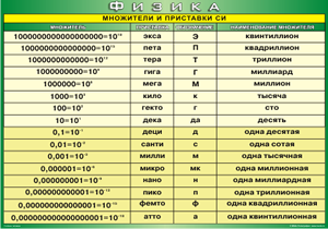 Таблица "Множители и приставки СИ" (100х140 сантиметров, винил)