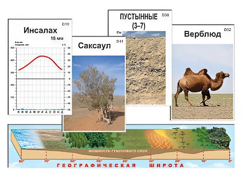 Пособие предназначено для использования в качестве демонстрационного материала на уроках географии при изучении тем, посвященных природным зонам.