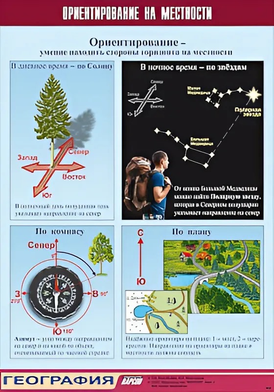 Главная Каталог Демонстрационные учебно-наглядные пособия Кабинет географии Таблица демонстрационная "Ориентирование на местности" (винил 70*100)
