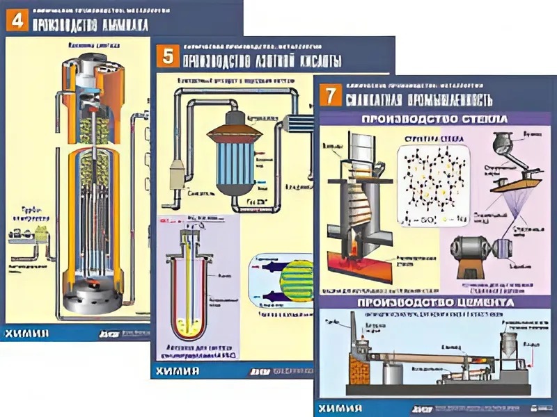 Комплект таблиц по химии демонстрационных "Химическое производство. Металлургия" (16 таблиц, формат А1, ламинированные)