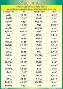 Таблица "Произведение растворимости малорастворимых в воде электролитов при 25°С"