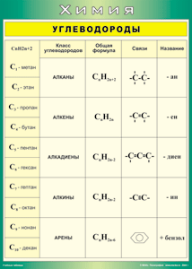 Главная Каталог Демонстрационные учебно-наглядные пособия Кабинет химии Таблица "Углеводороды" (100х140 сантиметров, винил)