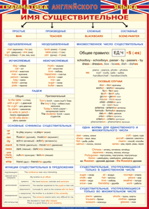 Таблица "Грамматика английского языка. Имя существительное" (100х140 сантиметров, винил)