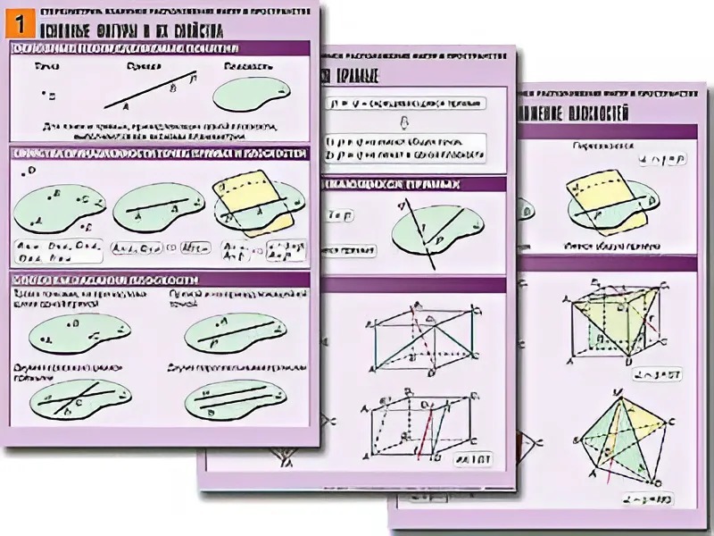 Комплект таблиц по геометрии "Стереометрия. Взаимное расположение фигур в пространстве" (8 таблиц, А1, ламинированные) - fgospostavki.ru - Обнинск