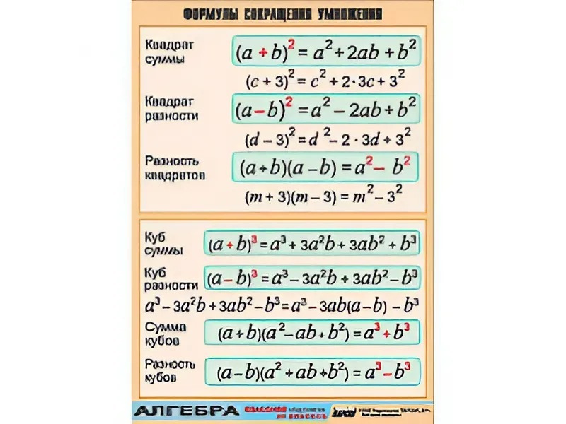 Главная Каталог Демонстрационные учебно-наглядные пособия Кабинет математики Таблица демонстрационная "Формулы сокращения умножения" (винил 70*100)