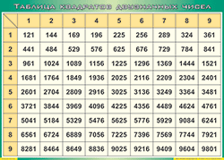 Таблица квадратов двузначных чисел