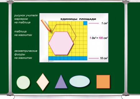 Состав комплекта: 1 таблица 50х70 см на магните, 6 геометрических на неодимовых магнитах для крепления на таблице