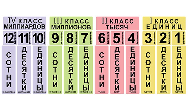 Эти магнитные карточки разноцветные: все, что относится к первому классу единиц - желтоватое, второй класс тысяч - нежно-розовый, третий класс миллионов - цвета первой весенней травы, а карточки четвертого класса миллиардов благородно-лиловые. Они прекрасно смотрятся на школьной доске, замечательно помогая объяснить ребятам непростую тему. При этом сам учебный материал четко структурирован и предельно точен.