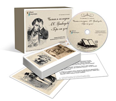 СD-диск пособия включает в себя текстовой и изобразительный материал, посвященный творчеству А.С. Грибоедова и его произведению «Горе от ума»: иллюстрации художников М.С. Башилова, П.П. Соколова, Д.Н. Кардовского, интерактивные таблицы, вопросы и задания.