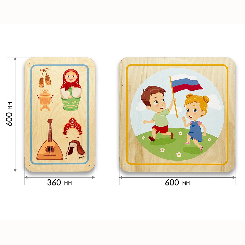 Дополнительные модули бывают однотонные и с тематическими иллюстрациями, подходящими под тематику дидактических панелей. Разнообразие размеров способствует декорированию стен различной конфигурации и масштабов. Параметры варьируются от совсем маленьких модулей 300х300 мм до крупных размеров 600х600 мм.