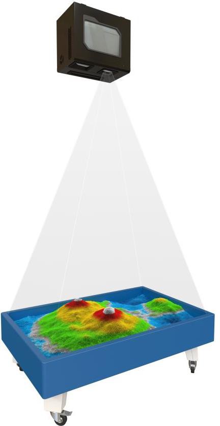 Это уникальный инновационный продукт, который можно использовать в обучающем процессе. Песочница, дополненная проектором, компьютером, датчиком глубины и специально разработанным программным обеспечением, позволит смоделировать обучение и развитие ребенка в увлекательной форме.