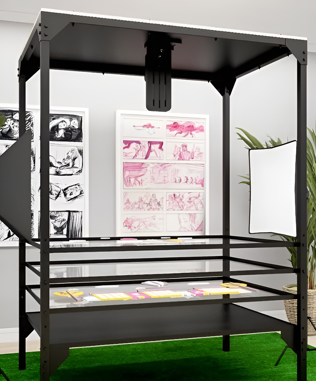 Большой размер и удобное крепление для камеры позволяет снимать настоящую сказку и участвовать в чемпионах по детской мультипликации. Использование ярусов даёт возможность разложить съемочный материал, так что бы он не мешал друг другу.