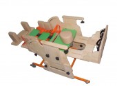 Опора для сидения представляет собой ортопедическое кресло на деревянной раме, расположенной на металлическом четырехколесном основании. Все колеса поворотные, задние колеса оснащены стояночными тормозами. Сидение и спинка оснащены съемными мягкими подушками и мягкими упорами-ограничителями. На подножке расположены пластиковые крепления для ступней типа «сандалии» с задними упорами и крепежными ремешками. Опора оснащена подголовником и съемным столиком, устанавливаемым на подлокотники.