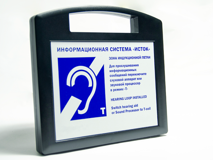 Система информационная переносная предназначена для передачи аудиоинформации лицам с нарушенной функцией слуха при повышенном уровне окружающего шума или при наличии преграды между собеседниками в общественных и многолюдных местах, в зонах обслуживания населения (возле стоек информации, кассах).