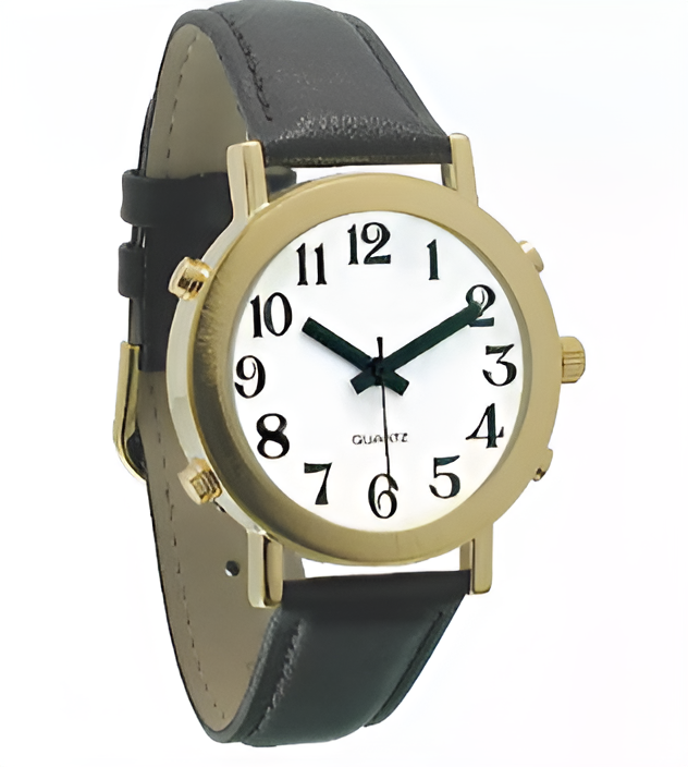 Часы для слабовидящих людей с белым циферблатом на кожаном ремешке