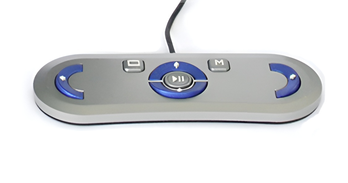 Интуитивная клавиатура дистанционного управления предназначена для прослушивания, просмотра и увеличения текста с помощью читающей машины.