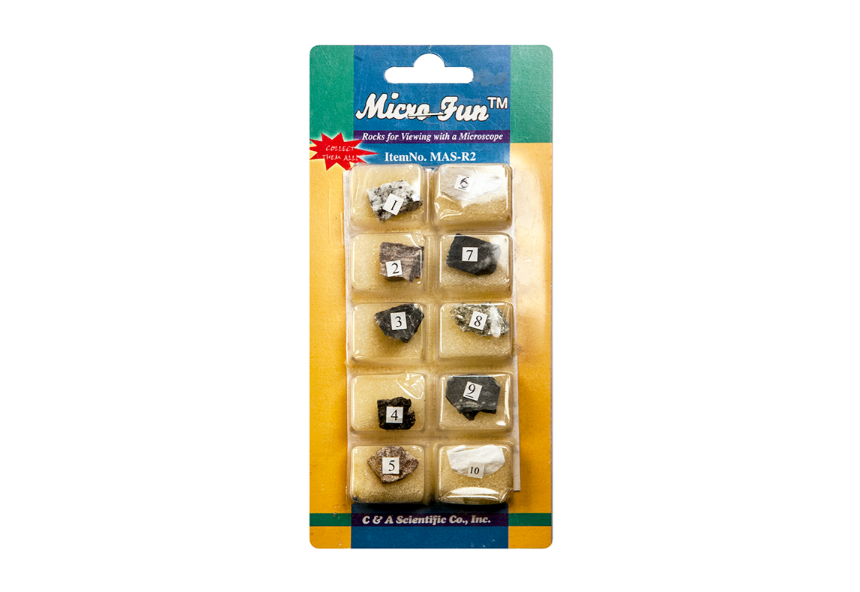 Данные препараты для стереомикроскопа – настоящие минералы, с большинством из которых вы никогда ранее не встречались. В процессе изучения станет понятно, как эти минералы дополняют друг друга, чтобы получились объекты, которые вы видите каждый день: дороги, здания, мебель.
