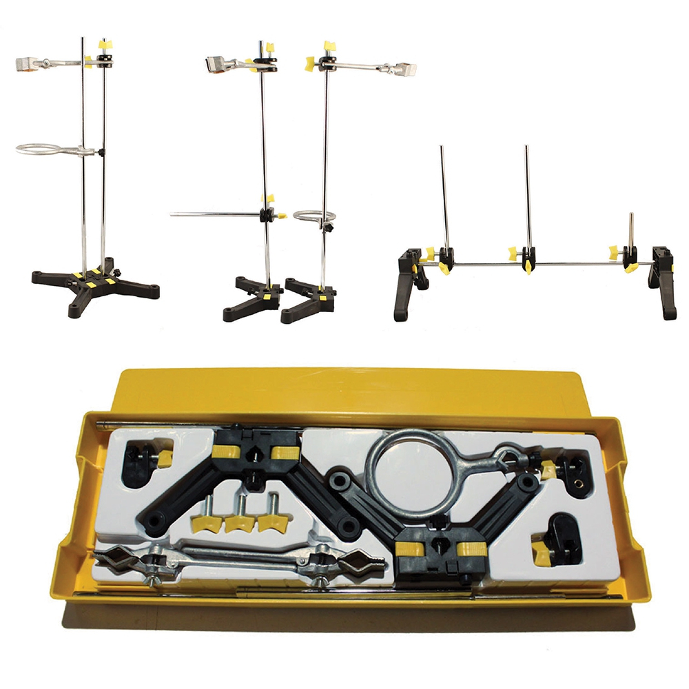Конструкция штатива позволяет располагать муфты на различной высоте и вращать их во всех плоскостях, что облегчает монтаж установок и приборов.