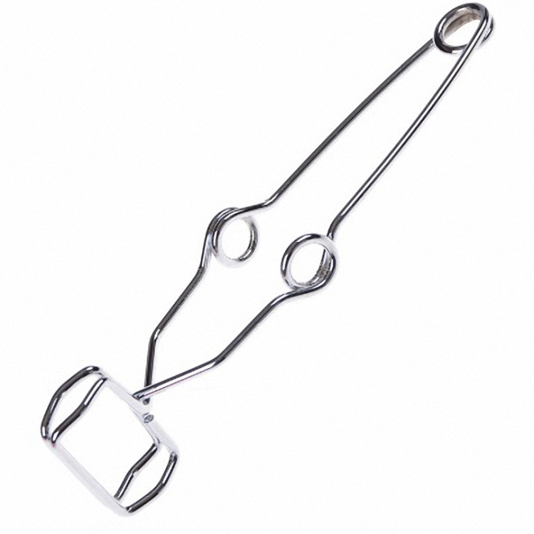 Зажим представляет собой две пружинящие металлические пластины, закрепленные в пластиковой ручке. Является удобным приспособлением для держания пробирок диаметром от 10 до 20мм. Использование зажима позволяет защититься от возможных ожогов, полученных как от раскаленного стекла, так и от жидкости, выбрасывающейся из пробирки в результате вскипания.