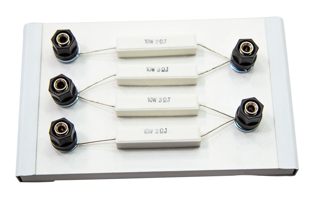 Изделие представляет собой прямоугольную панель, на которой закреплены четыре резистора одного номинала, соединенные последовательно. На выводах резисторов установлены универсальные контактные гнезда. Резисторы имеют термостойкие керамические корпуса, внутри которых находятся проволочные спирали, изготовленные из материала с высоким удельным сопротивлением. Универсальные гнезда позволяют использовать при работе с изделием соединительные провода, оконцованные штекерами или плоскими наконечниками. Коммутируя резисторы магазина в различных сочетаниях, можно получать электрические цепи из последовательно соединенных от двух до четырех элементов, параллельное соединение от одного до трех элементов в каждой ветви, а также цепи со смешанным соединением элементов.