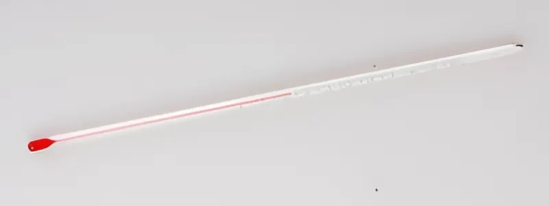 Прибор представляет собой стеклянную оцифрованную трубку с впаянным капилляром и баллоном со спиртовым раствором.