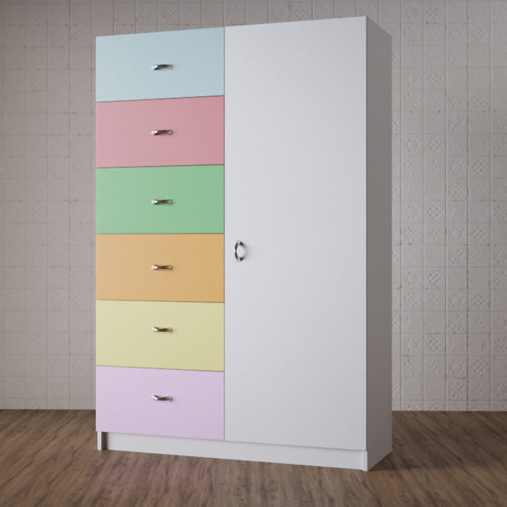 Шкаф «Яркие краски» создан в неброских тонах, что подходит для мальчиков и девочек с возможностью комбинации с другой мебелью. Шкаф сочетает в себе качество, безопасность, а также стиль, помогая детям с раннего возраста вырабатывать полезные качества в виде умения хранить все на своих местах. Универсальный гардероб позволяет с первых минут привлечь внимание детей, что способствует стимуляции поддержания порядка, а также самостоятельности.
