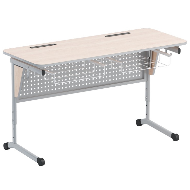 Стол ученический двухместный с перфорированной панелью, наклоном столешницы (0-24°) и корзиной - fgospostavki.ru - Обнинск