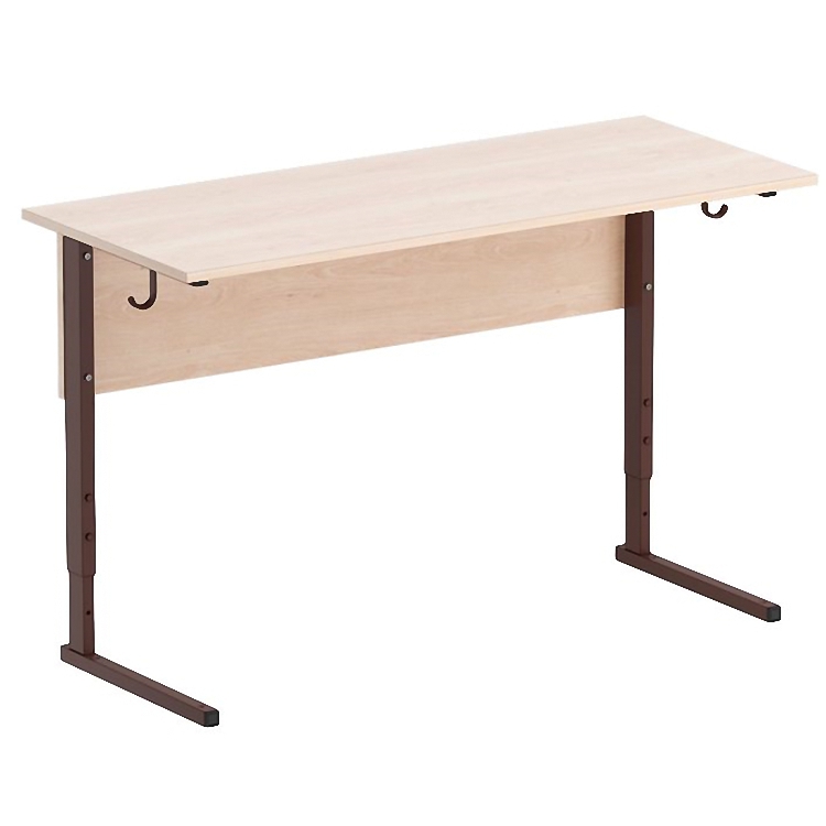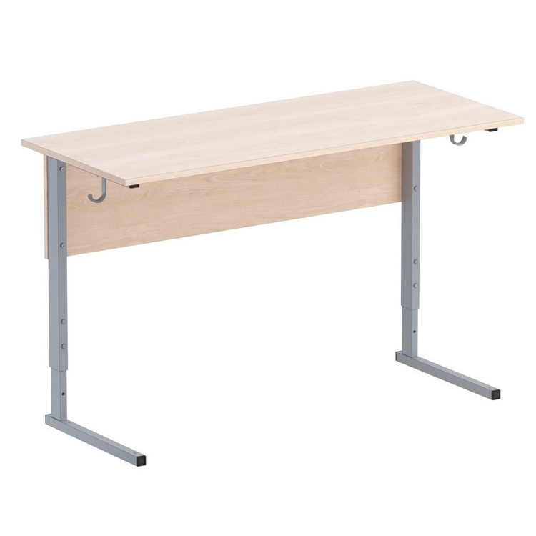 Позволяет регулировать высоту стола в зависимости от роста учащегося. Изготавливается на металлическом каркасе прямоугольного и квадратного сечения, окрашенном порошковой краской, стойкой к химическим и механическим воздействиям, на свободных концах труб установлены заглушки из ударопрочных полимеров. Столешница и передняя панель выполнены из ламинированной ДСП 16 мм, торцы столешницы облицованы кромкой ПВХ 2 мм.