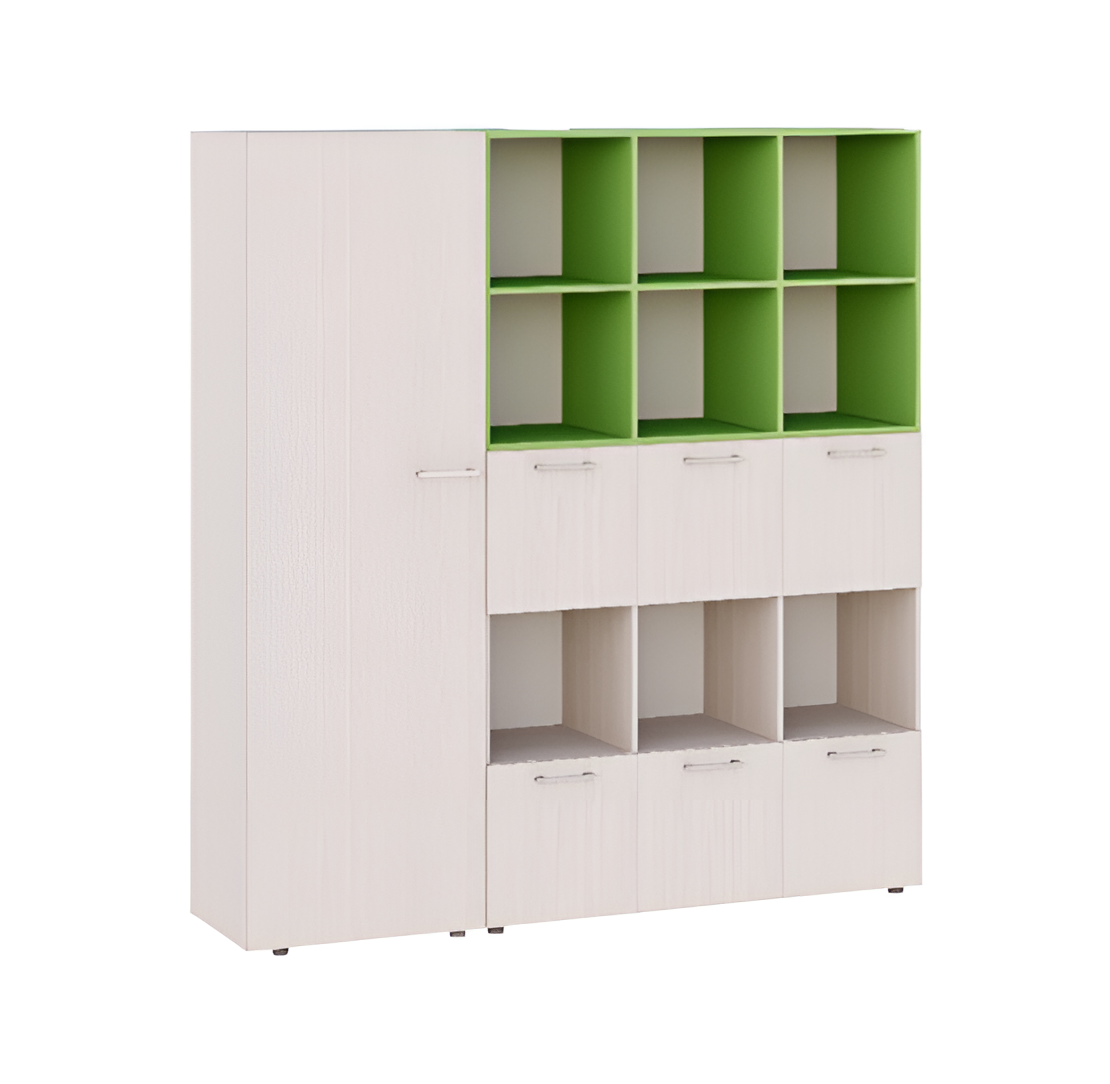 Шкаф Leader состоит из шкафа для одежды и открытых полок, оснащен регулируемыми ножками. Возможность выбор цвета вставок