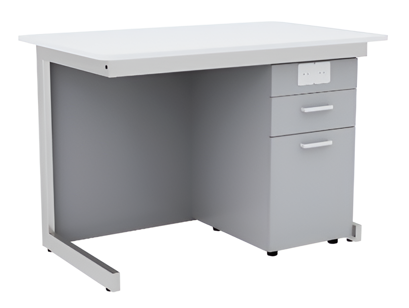 Стол преподавателя для кабинета физики/химии/биологии выполнен из металлического корпуса, со встроенной тумбой.