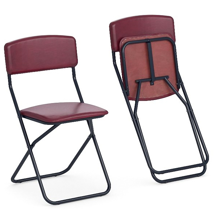 Каркас стула складного выполнен из гнутой стальной трубы.