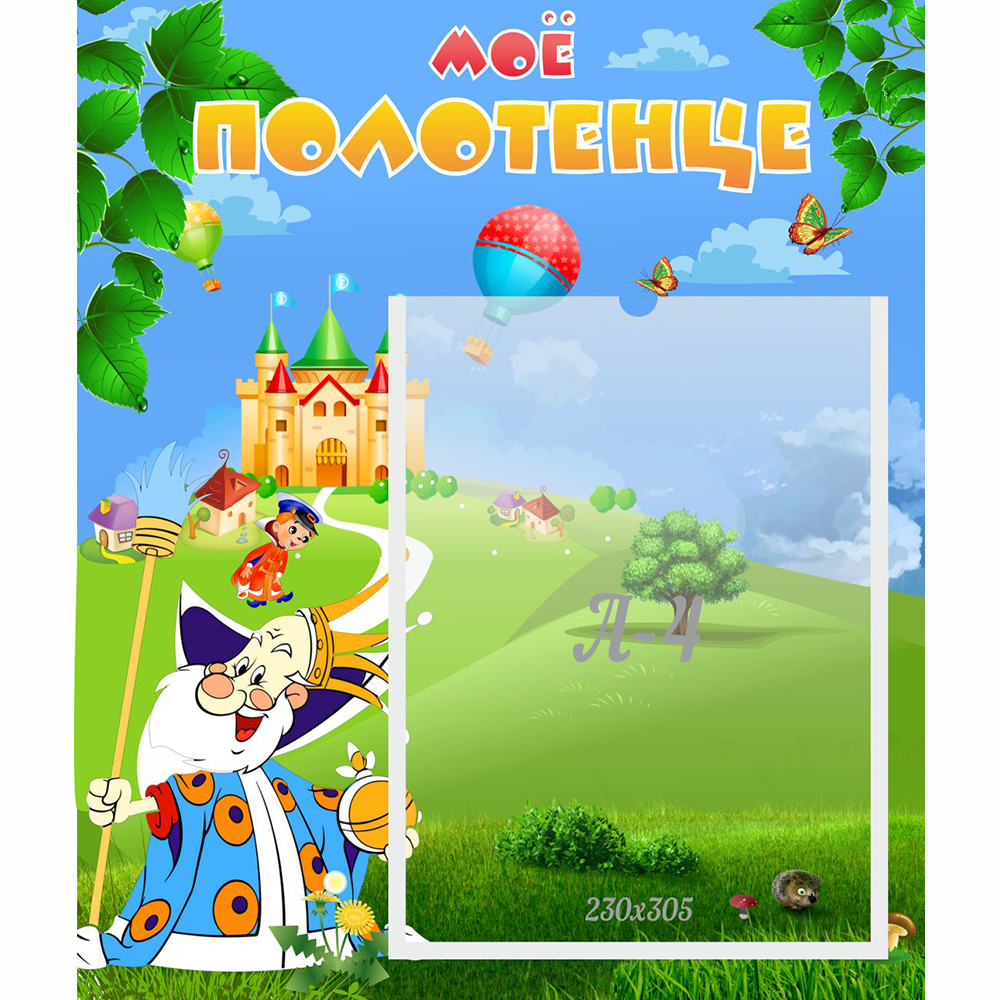 Украшен изображением персонажей из мультфильма, лужайки и воздушного шара. Стенд познакомит ребят с правилами личной гигиены, чистоты и порядка. С его помощью малыши смогут избежать путаницы и будут знать, на каком крючке висит их полотенце. Для размещения списка предусмотрен карман формата А4