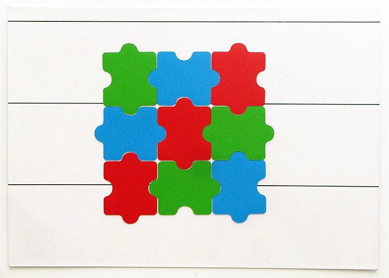 «Фонематический квадрат» предназначен для занятий с детьми дошкольного и младшего школьного возраста и состоит из 9 магнитных карточек разноцветного пазла: 3 красных, 3 зелёных, 3 синих с одинаковыми «замками», магнитной палочки красного цвета и гибкого магнитного поля. С его помощью, используя различные комбинации элементов, можно превратить занятия в интересную и нескучную игру.