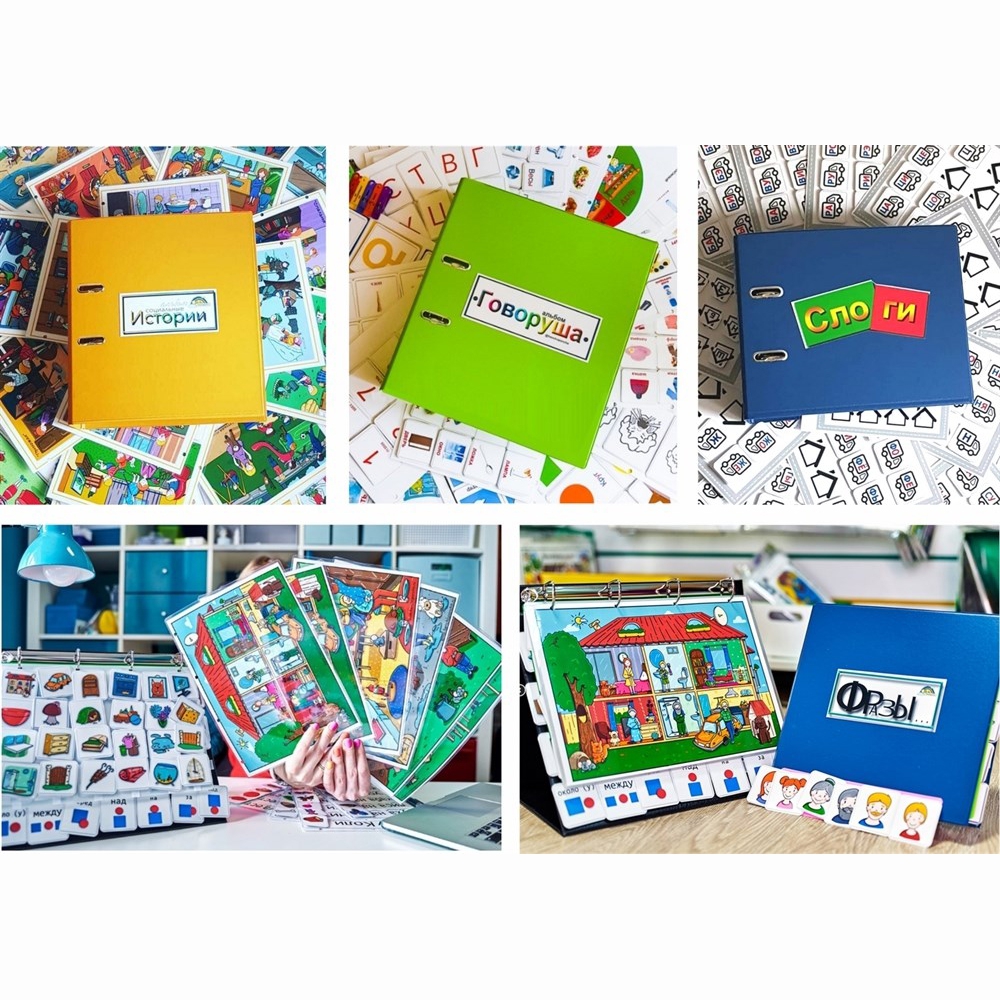 Комплект методических материалов представляет собой набор из пяти пособий. Данный набор пособий полностью отвечает потребеостям по развитию речи от пополнения словарного запаса простых бытовых слов, конструкторы соствления фраз и составления рассказа по картинке. Также в комплект входят пособия по проработке отдельных слогов и звуков.