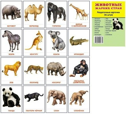 Раздаточные карточки "Животные жарких стран" - fgospostavki.ru - Обнинск