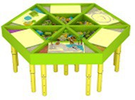 Крышка стола имеет магнитно-маркерную поверхность, на которой дети могут писать, рисовать разноцветными  фломастерами, лепить, изучать цифры и буквы,  играть, создавать различные истории из магнитных карточек, собирать пазлы,  а потом легко стереть или убрать  результаты своего творчества.  При такой организации учебного процесса, будут задействованы все дети , и каждый из них, будет чувствовать свою значимость, и сможет выразить свои чувства и эмоции.