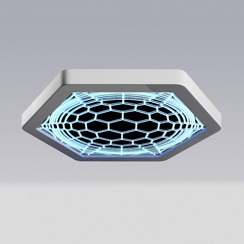 Для оформления потолка в сенсорных комнатах отлично подойдут потолочные панели. Шестигранные светильники мерцают в темноте словно иллюминатор, ведущий в глубины загадочного космоса. Это завораживает внимание малышей, нормализует работу нервной системы и успокаивает пульс, помогает расслабиться и отключится от тревожных мыслей. Потолочные панели имеют зеркальную поверхность и расположенную внутри светодиодную подсветку.