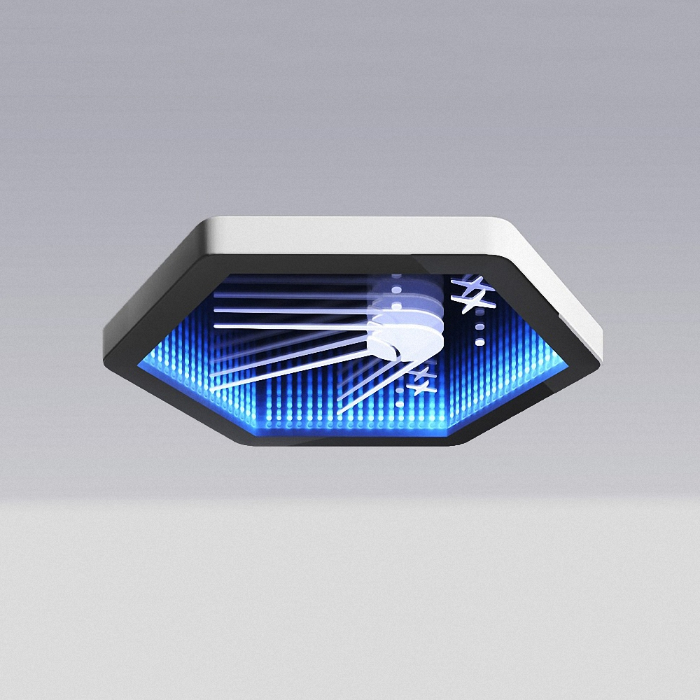 «Зеркало бесконечности» создаёт эффект тоннеля, уводящего в бесконечную чёрную даль. Только звёзды и отважный спутник устремляются вглубь него, чтобы исследовать загадочные миры.