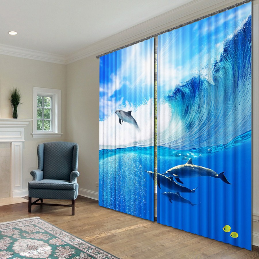 Комплект светонепроницаемых штор "Дельфины" - fgospostavki.ru - Обнинск