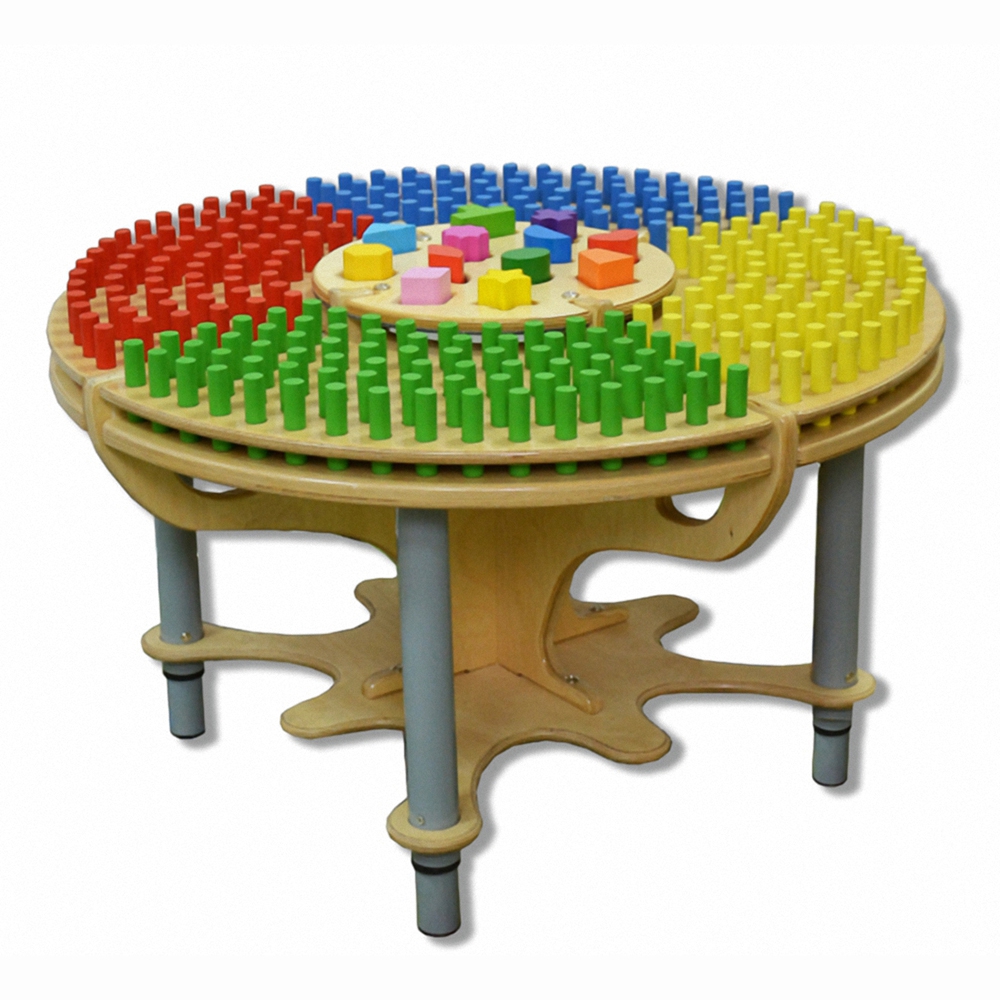 Сортер «Эко» представляет собой деревянный стол с углублениями разной формы. В комплект входят 300 деталей цилиндрической формы разного цвета и 12 геометрических фигур. Ребенок в процессе игры сортирует фигуры и параллельно учится различать их по нужным признакам.