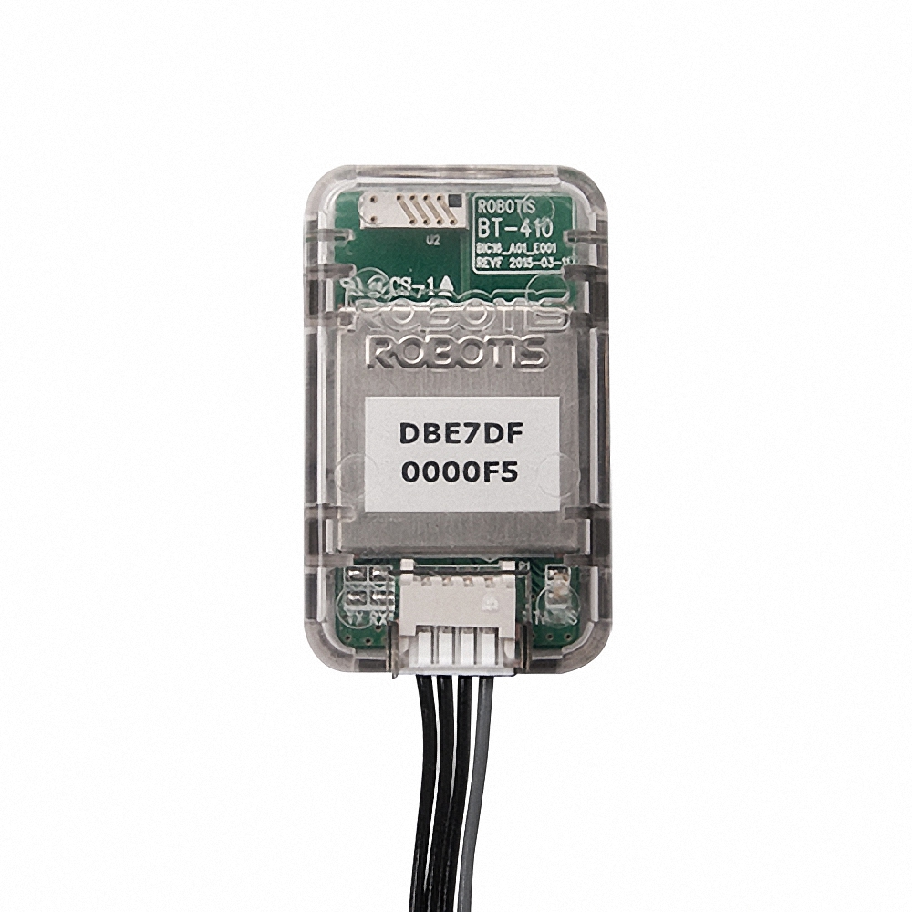 Модуль беспроводной связи BT-410 - это устройство, позволяющее установить последовательное соединение (UART) через беспроводную связь Bluetooth. Модуль BT-410 поставляется в прозрачном пластиковом корпусе, защищающем электрическую плату. Также в комплекте с модулем идет соединительный кабель, используемый для подключения устройства к роботу.
