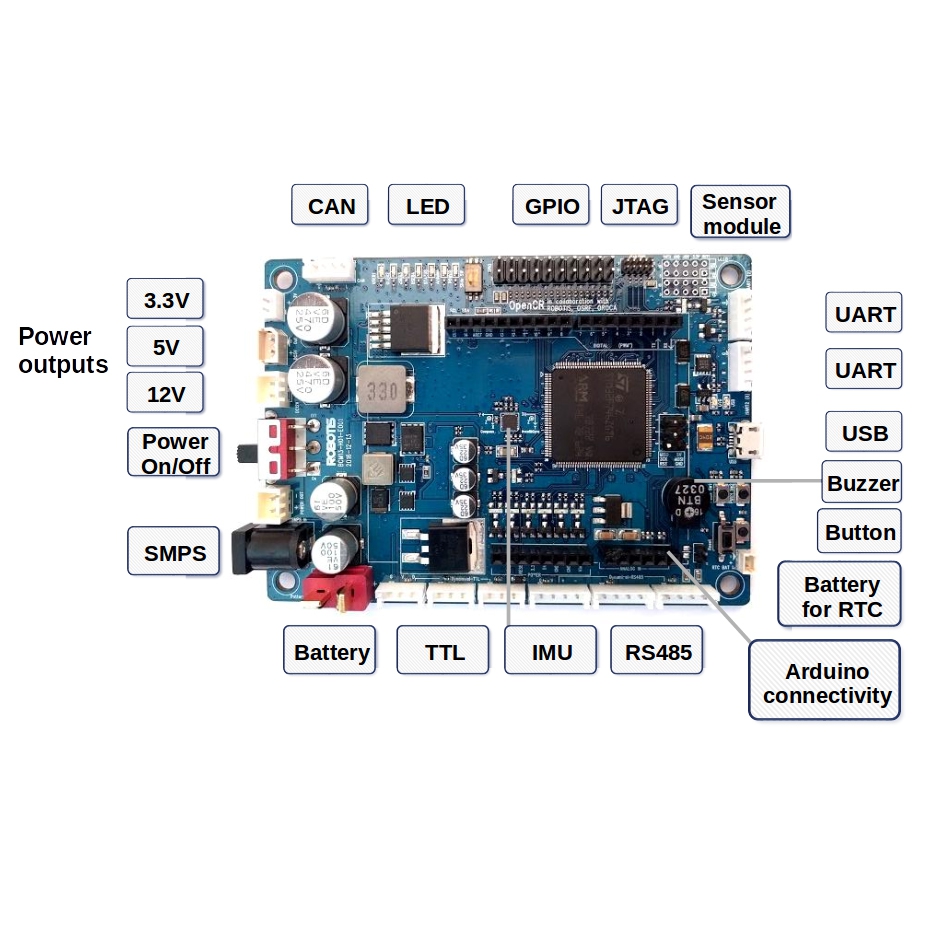 Модуль управления OpenCR1.0 (открытого исходного кода модуля управления для ROS) - программируемый робототехнический контроллер с открытым исходным кодом со встроенным мощным MCU от ARM Cortex M-7.
