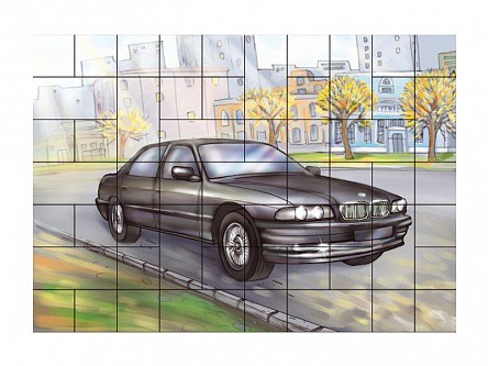 Магнитный пазл представляет собой игру-головоломку, в которой требуется составить мозаику из множества фрагментов рисунка автомобиля различной формы, выполненных в виде магнитов.