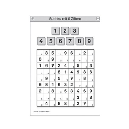 Комплект карточек многоразового использования с известной головоломкой, составленных из традиционных квадратов на 9 символов. В верхней части каждой карточки указаны все символы, цифры или буквы, необходимые для решения головоломки. Игровая задача - заполнить свободные клетки так, чтобы в каждой строке, в каждом столбце и в каждом квадрате каждый элемент встречался бы только один раз. Карточка с игровой задачей вкладывается в планшет с прозрачной пленкой, на которой можно писать недостающие символы, буквы или цифры фломастером на водной основе, стираемым сухим ластиком. Неверные варианты можно вычеркивать или стирать, при этом игровые карточки остаются чистыми. На обратной стороне карточек – решение задачи; перевернув карточку под пленкой можно сравнить свой вариант с правильным решением. Уровень предлагаемых заданий постепенно усложняется. В комплект входят также пустые карточки для составления собственного варианта Судоку. Игровое пособие развивает мышление, логику, усидчивость.