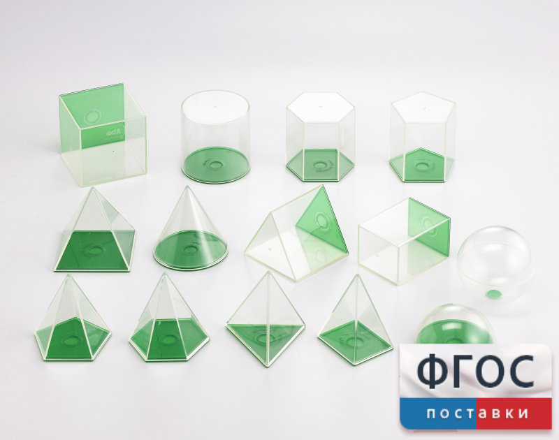 Изучайте геометрические тела и объемы.  Набор из 14 тел с крышками: куб, цилиндр, конус, треугольная призма, прямоугольная призма, пятиугольная призма, шестиугольная призма, квадратная пирамида, треугольная пирамида, четырехугольная пирамида, пятиугольная пирамида, шестиугольная пирамида, шар, полусфера.  Изготовлен из прочного пластика, с закругленными углами и краями.  Основание 8 см, 14 деталей.