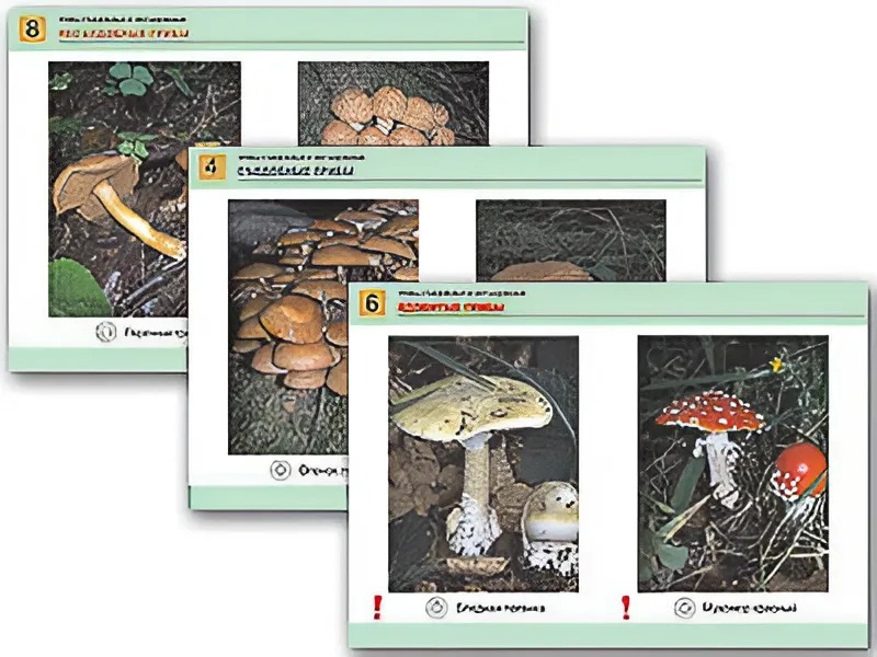 Комплект таблиц раздаточных "Грибы съедобные и несъедобные" (цветные, ламинированные, А4, 8 штук)