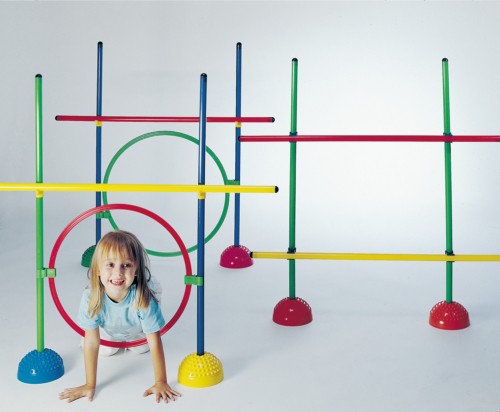 Обруч подходит так же для построения полосы препятствий, для этого его необходимо закрепить при помощи специальных клипс к гимнастическим палкам. При помощи конусов, палок и клипс, из обруча можно сделать «мишень», для тренировки меткости. Обруч для детей развивает координацию, поэтому заниматься с обручем полезно не только девочкам, но и мальчикам.