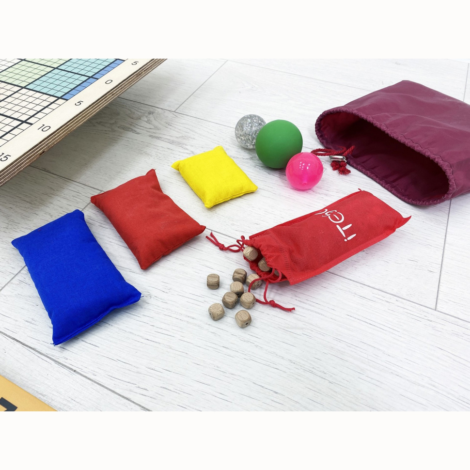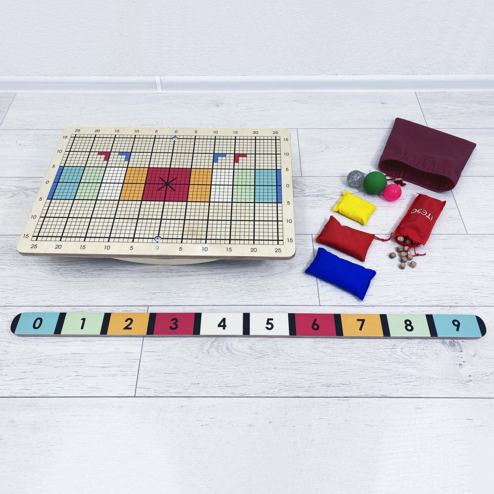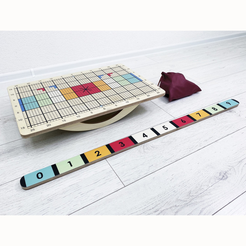 Балансир изготовлен из прочной экологичной фанеры, не имеет острых углов, о которые можно травмироваться. Изделие хорошо отшлифовано и покрыто огнезащитным лаком, стойким к загрязнениям и истиранию. В комплекте идёт набор дополнительного инвентаря для занятий, методическое пособие и универсальный ключ для поворота полозьев.